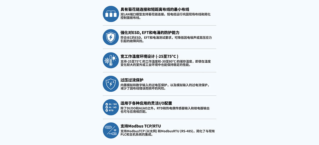 Robust I/O系列提供以数字量I/O (DI/DO) 和模拟量I/O (AI/AO) 为中心的广泛模块阵容,以满足各种现场应用。
