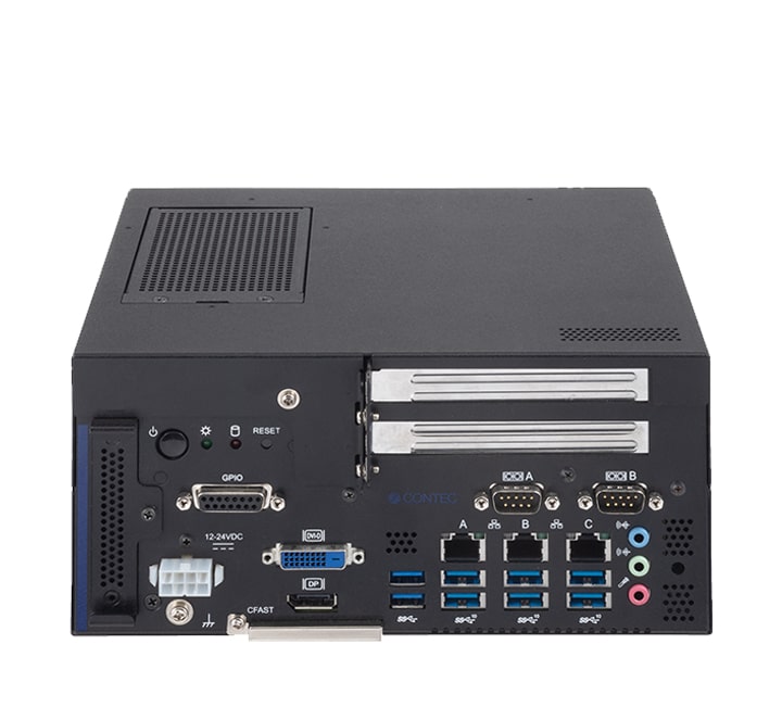DVI-D、DisplayPort、1000BASE-T×3、USB3.2 Gen2 (USB3.1)×6、USB3.2 Gen1 (USB3.0)×2、シリアル(RS-232C)×1、シリアル(RS-232C/RS-422A/RS-485)×1、オーディオ、GPIO(絶縁、Input×4、Output×4)などの拡張インターフェイスを搭載。様々なシーンにおいてご使用いただくことができます。