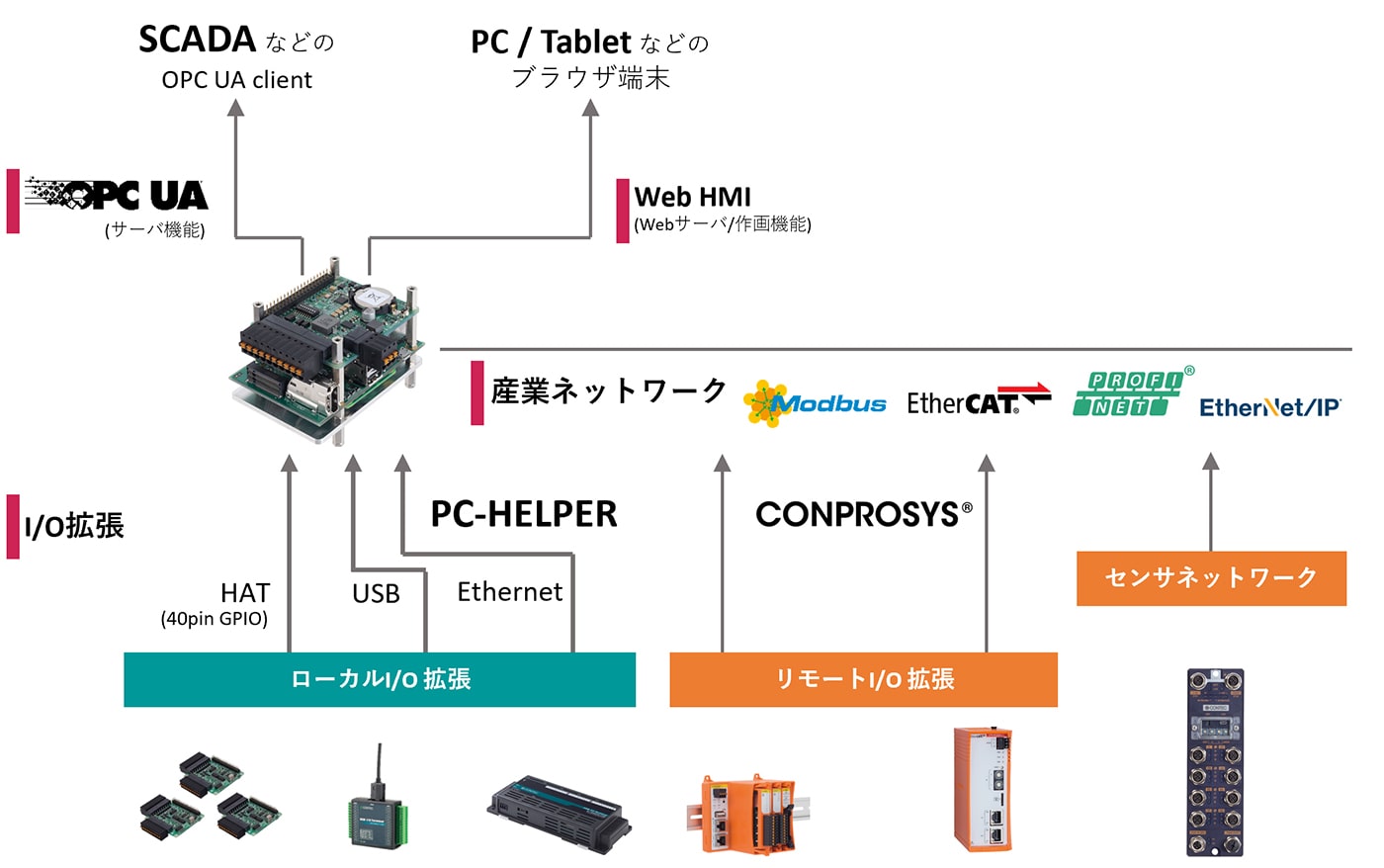 CODESYS と Raspberry Pi の融合によりオープンでグローバルスタンダードなコントローラが誕生。PCベース計測制御のパイオニアであるコンテックが送る PC-HELPERシリーズ / CONPROSYSシリーズの資産を活用して新しいコントローラを創造していきませんか。