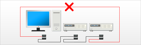 - 例2)全機器3台の場合(コントローラ1台+GPIB通信機器2台)