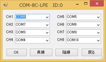 以上の操作で、COMポート番号とケーブルのchと割り付けることができます。