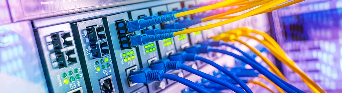 スイッチングハブやルーターなどのネットワーク機器と光ファイバーケーブルを接続することで、長距離かつ安定した通信を実現します。