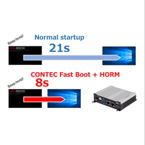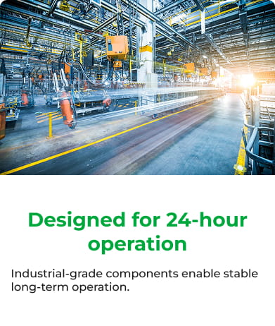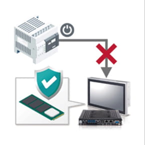 Combined with the Write Filter function of Windows Embedded / IoT devices, the Power Failure Protection system enables operation even in the event of a power failure without the need for shutdown procedures. The system also prevents data loss caused by sudden power loss.
