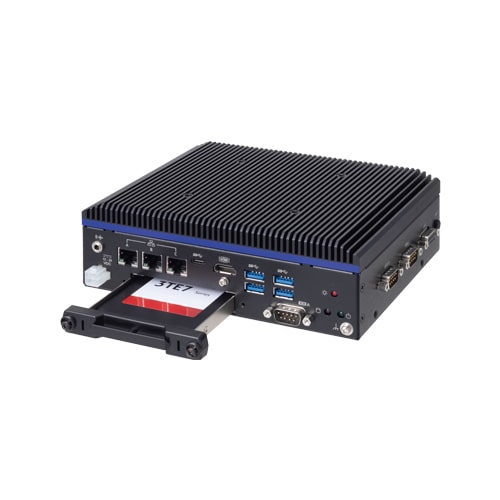 The product includes varied interfaces such as HDMI, USB-C, 2.5Gb LAN x 1, 1Gb LAN x 2, USB 3.2 Gen 2(USB 3.1) x 4, RS-232C/422A/485 x 2, RS-232C x 1, DIO, and audio in addition to a slot for 2.5-inch slot-in SATA disks.